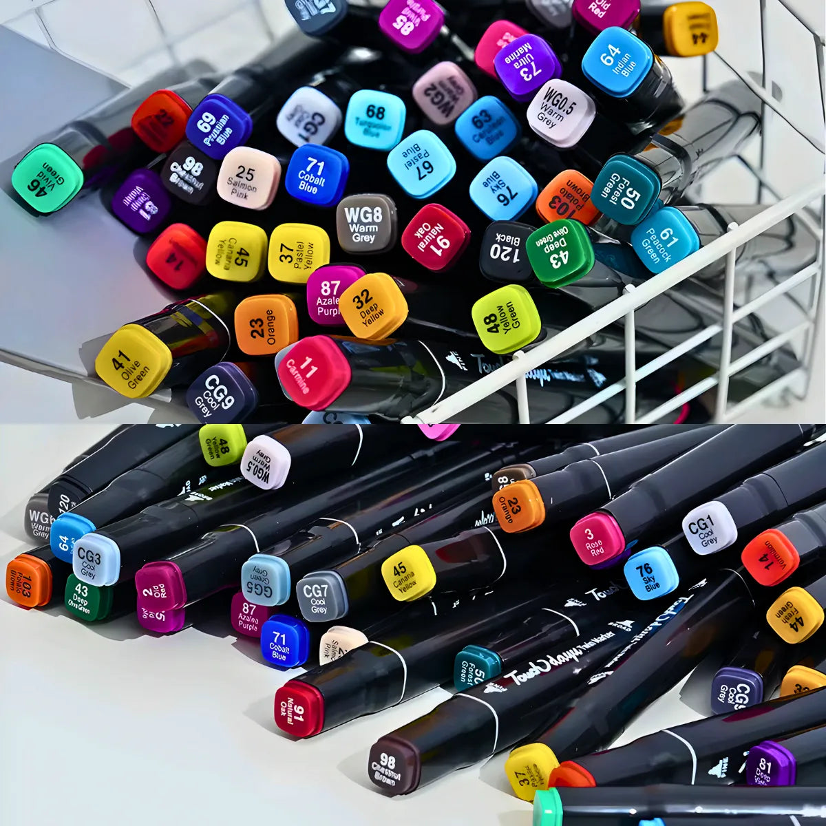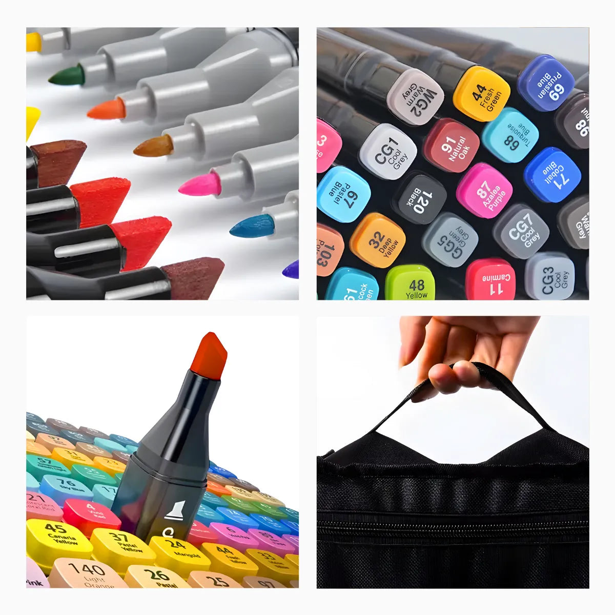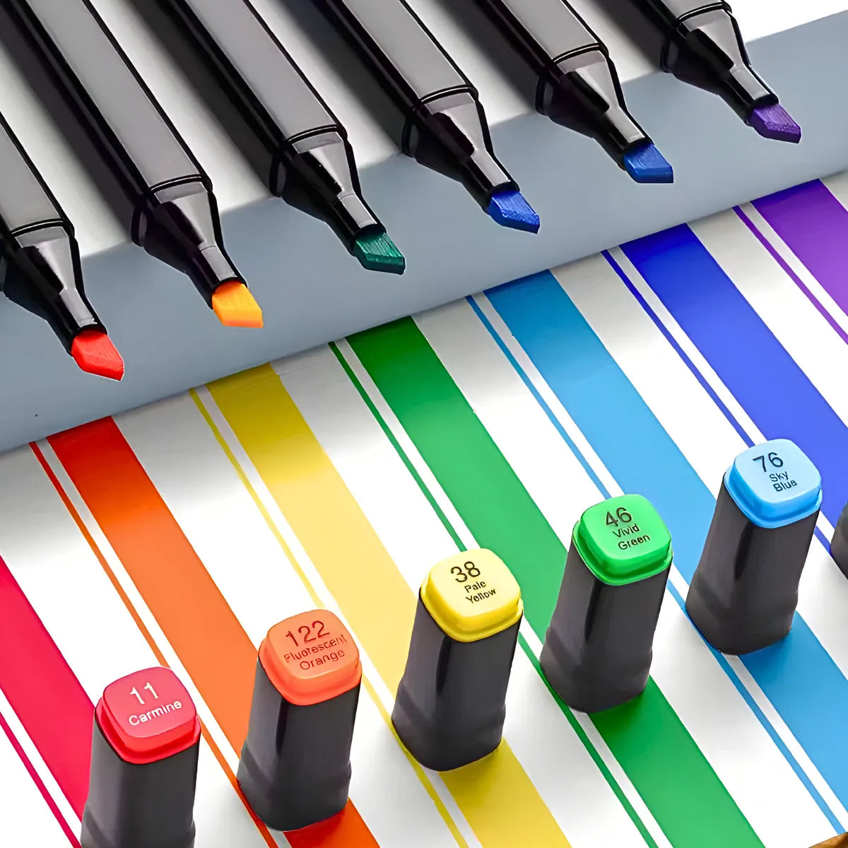 - Organização Prática : As tampas codificadas por cores facilitam a identificação rápida das canetas. O design ergonômico proporciona conforto durante o uso prolongado, tornando a experiência ainda mais agradável.